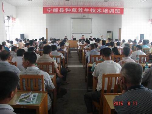 为贯彻落实好省畜牧局提出的大力发展养牛产业政策,发挥肉牛养殖产业在我县精准扶贫工作中的作用,宁都县畜牧兽医局在8月11日举办了全县种草养牛技术培训班,培训班特别邀请到省畜牧技术推广站草业科科长、高级畜牧兽医师于徐根、畜牧水产科高级畜牧兽医师陈国良两位专家现场授课,两位专家就种草和养牛科学技术及疫病防治等内容进行了授课,并现场解答了养牛业主的提问,培训班气氛良好,取得预期效果。
