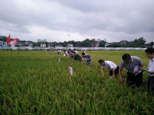 7月7日,由江西省种子管理局组织率领的省水稻品种审定委员会专家组到赣县观摩考察省级早稻新品种区域生产试验。 专家组一行深入江口镇优良村早稻新品种生产试验田进行实地观摩考察,认真听取试验负责人有关情况介绍,详细了解生产试验品种种植情况,然后仔细察看各品种种植表现,并对各品种表现进行认真记载。专家们认为,该试验品种布局规范、病虫防治及时、肥水管理到位,能真实反映品种特征特性,为品种审定提供了科学有效的依据。 赣州市农粮局、赣县农粮局领导陪同考察。
