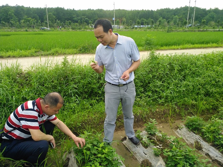 赣州市植保局何益民局长一行在瑞金市督促指导农作物病虫防治工作