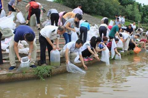 为保护和增殖自然水域的渔业资源,维护生物多样性,提高水体自净能力,改善渔业水域生态环境,促进渔业经济的可持续发展,6月2日,赣州市农业和粮食局在章江浮桥码头举行2015年第二次渔业资源增殖放流活动,放流鲢鱼、鳙鱼夏花鱼种总计260万尾。 市政协、市委组织部、市财政局、章贡区农粮局等单位代表,以及市农粮局全体干部职工和热心市民500多人参加了此次放流活动,赣州市电视台记者全程跟踪采访。